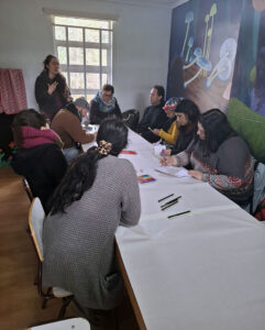 Desde fines de agosto se han desarrollado dos jornadas para el diseño participativo de un mural que será pintado con tintes naturales en el patio interior de la Escuela Básica Rural El Manantial, en la actual comuna de Villarrica.