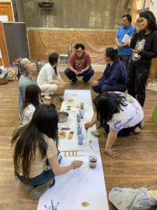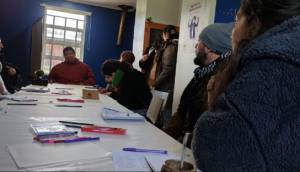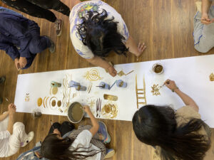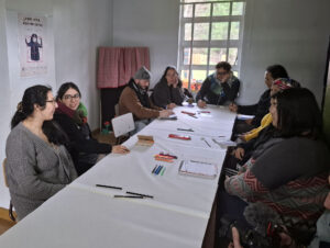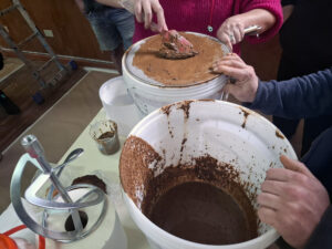 Dentro del proceso, a fines de octubre se hicieron 2 talleres para compartir la técnica de pinturas naturales. Las instancias se realizaron con adultos y 6 sesiones para niños y niñas de la Escuela El Manantial de Relún, pero también del Espacio Educativo La Fragua. La instancia fue facilitada por Santiago Naudon, Arquitecto y parte del equipo ejecutor. Les mostramos cómo las tierras recolectadas fueron tamizadas y coladas, hasta obtener una pasta suave. A esto le agregamos cola fría y aceite para preparar una pintura no tóxica, hecha con materiales locales y que generan colores cálidos y suaves. Lorena Bravo, profesora diferencial de la Escuela Manantial de Relún se sorprendió con todo el conocimiento técnico compartidos y señaló: “Hay mucho conocimiento técnico, hay mucha ciencia también”.