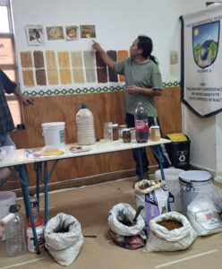 Paz Vallejo, facilitadora de artes visuales colegio Alberto Hurtado de Villarrica, por su parte sostuvo como proyección de los aprendizajes adquiridos en el taller de pintura con tintes de tierra que visualiza es aplicarlo con jóvenes en el taller de diseño de arquitectura que facilita “esto es súper pertinente, porque podemos hablar de posibles construcciones que no son las convencionales, que son también una alternativa ecológica y económica. Fue una experiencia increíble, poder aplicar esto con los chiquillos, replicarlo porque vivimos en un entorno que es rico en estas materias orgánicas, que nos pueden facilitar nuestro trabajo”