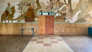 El mural participativo llevó por título: “Subiendo a conversar con el espíritu de la naturaleza”, nombre que fue propuesto por la estudiante de la escuela Catalina Matamala. Llegar a consenso sobre los elementos contenidos en el mural les llevó al menos 2 jornadas en pleno invierno para dialogar, tomar mate y ponerse de acuerdo entre todas las ideas que surgieron. El tema central, elegido por consenso fue el llamado Cerro de Agua Santa, que los niños de la escuela visitan todos los años. El lugar es un sitio de significancia cultural, visitado desde tiempos antiguos por personas de los distintos sectores aledaños. En las sesiones de dibujo colectivo, niños y adultos trazaron diversos elementos que quisieron destacar. Luego, esos aportes fueron recogidos por los artistas locales Paula Ferrer y Aner Urra (Ambos de Colectiva Tierra Húmeda Murales) quienes aunaron las visiones en un diseño que plasmaron en el muro.
